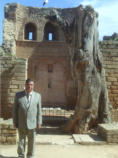 الدكتور محمد العيد مطمر بين أطلال مدينة شالة بالرباط